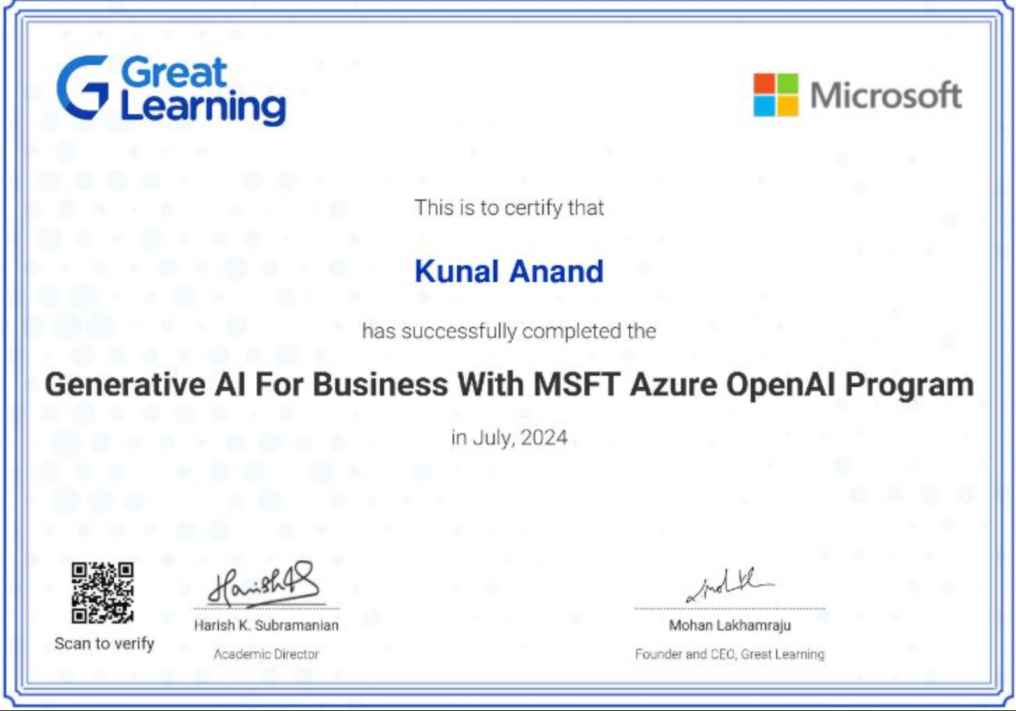 “I am grateful for the incredible opportunity to pursue my Artificial Intelligence and AI course... The trainer's approach was friendly and supportive, encouraging us to ask questions and clearing doubts effectively.”